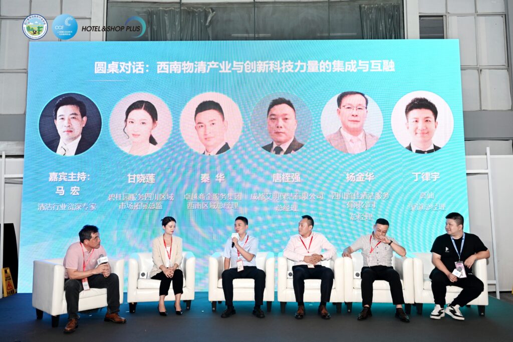 下午的圆桌对话由清洁行业资深专家马宏主持,碧桂园服务四川区域市场拓展总监甘晓莲、卓越商企服务集团西南区域总经理秦华、成都艾明保洁有限公司总经理唐桎强、四川首佳清洁服务有限公司总经理杨金华、高仙渠道总经理丁律宇共同讨论现代科技力量对物清行业产生的重大影响。