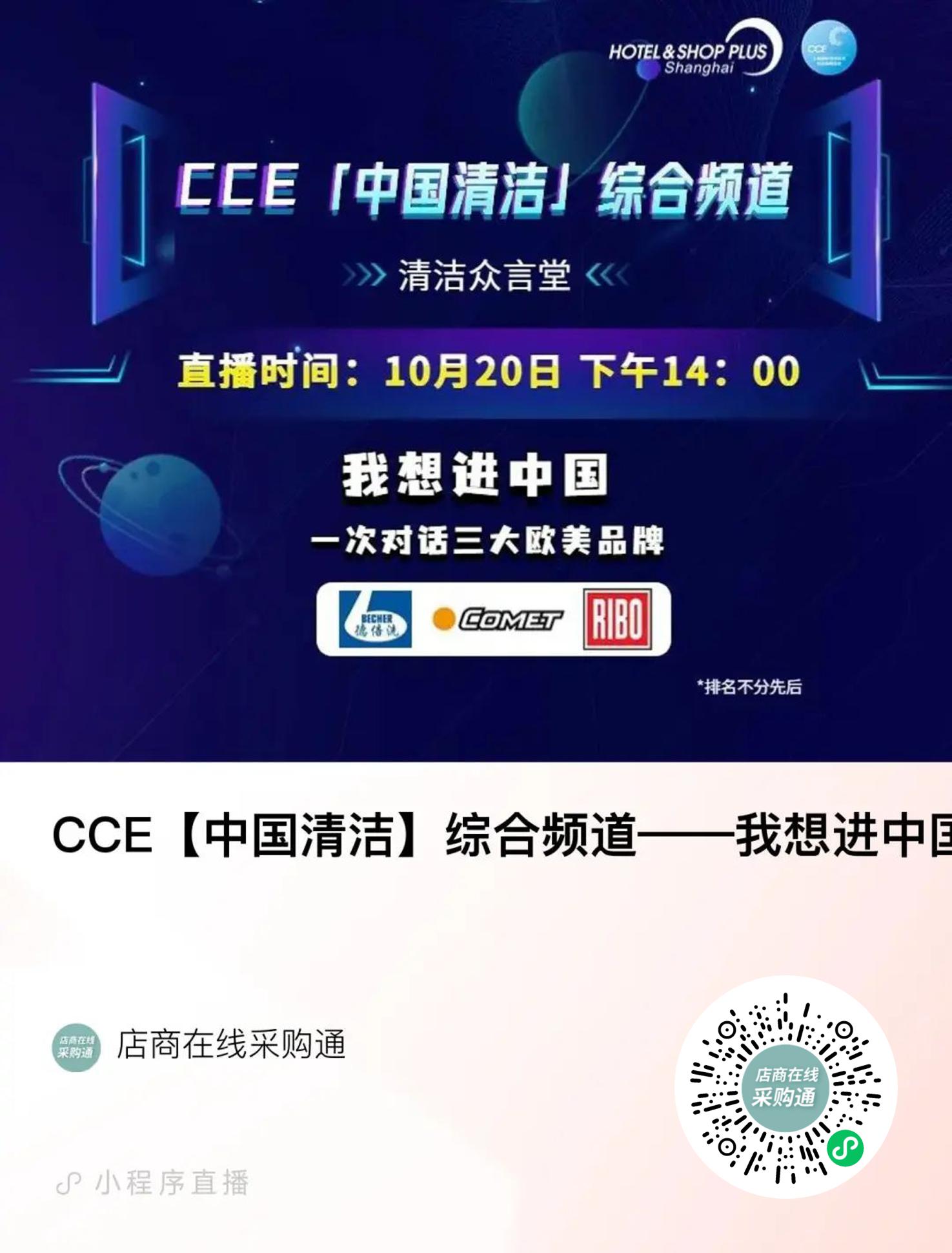 CCE「中国清洁」综合频道是由上海国际清洁技术与设备博览会主办方——上海博华国际展览有限公司策划、制作的多元化专业频道的互动空间。自2022下半年CCE「中国清洁」综合频道精彩上线以来,频道先后推出了二十余集精彩内容,为当时面临前所未有的经济下行压力及惨烈的市场内卷竞争的中国清洁企业提供了突围与逆势逃生的思路,获得了诸多行业同仁的大力支持和持续关注,吸引了15000+人次观看。