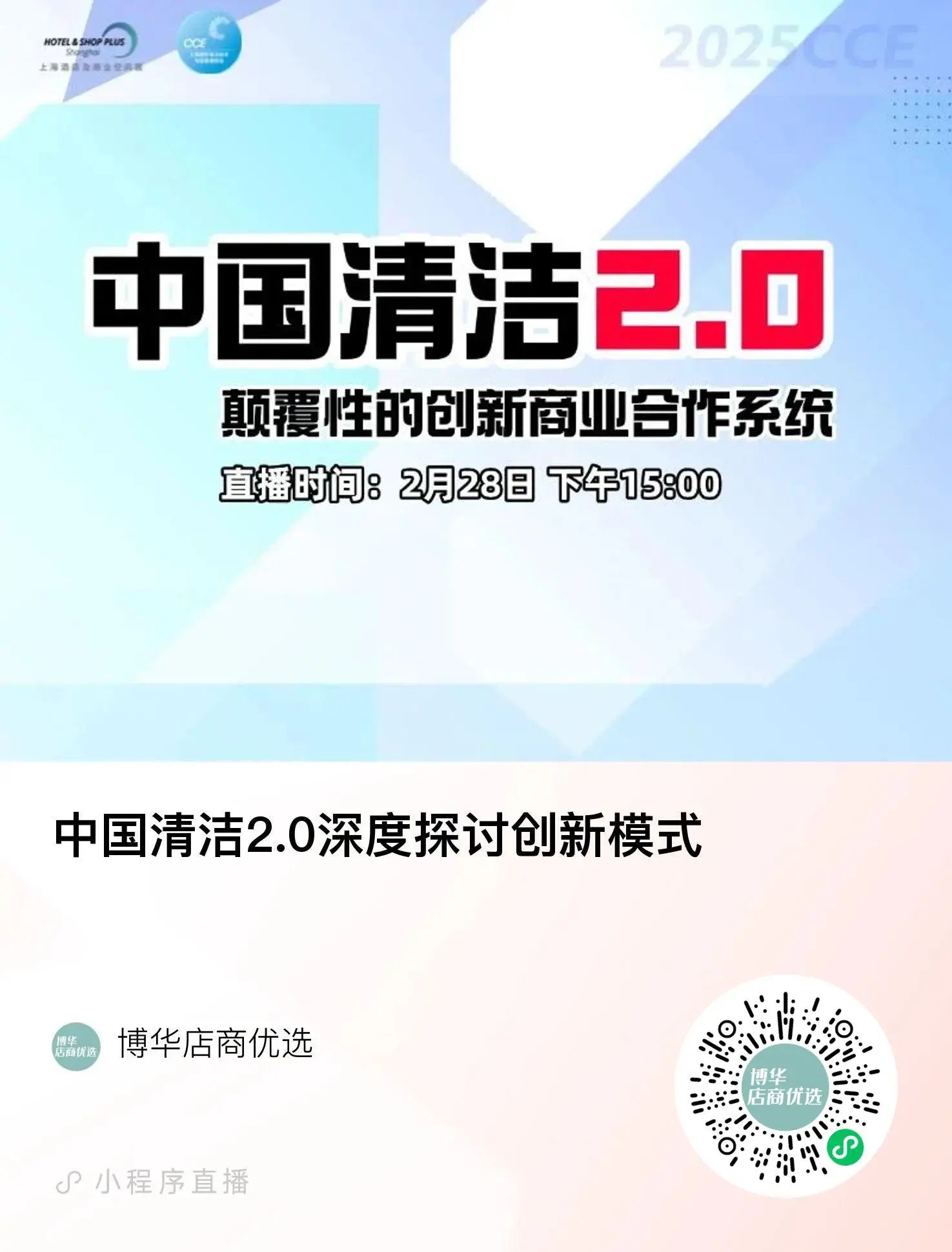 全球合作、市场变化、惨烈内卷、方向迷茫、今天的生存困境、明天的健康发展,我们需要一场深刻的思考与颠覆性的商业革命。上海博华国际展览有限公司于2025上海CCE展会期间所推出的中国清洁2.0高峰论坛,邀请多位商业领域重量级的主讲人,以其全球的视角、多维度的思考、具体的案例分析、前瞻的发展战略,为我们展开一幅全新、立体的未来产业的发展蓝图。